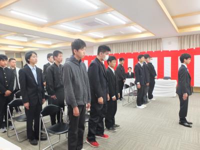 とあいさつの後、新入生を代表して建築科の花岡さんが