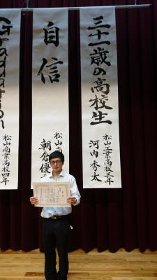 見事優秀賞に輝き、10月に今治西高校で行われる県大会にコマを進めた。
